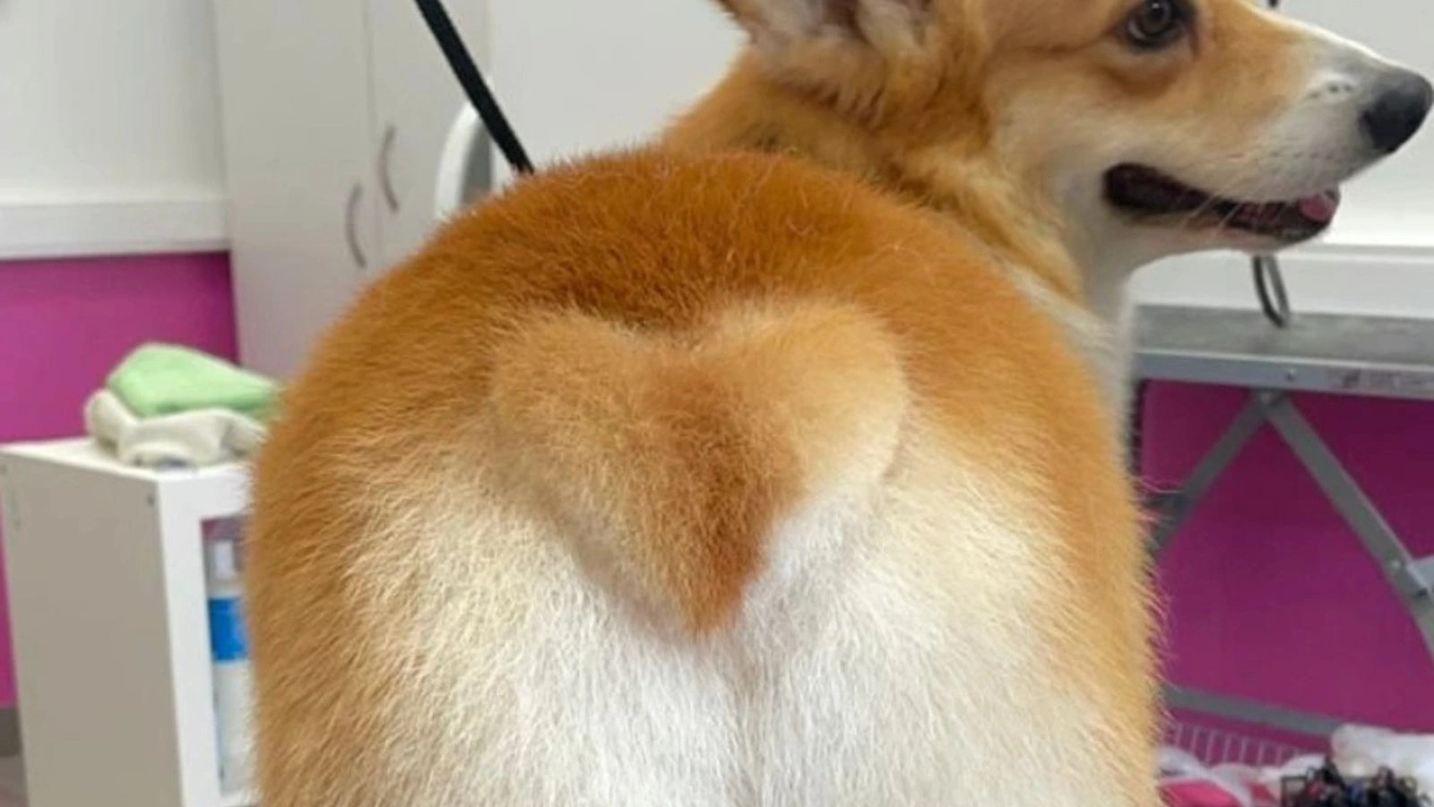 将肚脐以下毛发用小电剪进行剃除清理,注意保护公犬的生殖器以免被电剪剃伤,这一步是为了让腹部这种不便打理的部位保持洁净卫生,也更利于夏季散热。