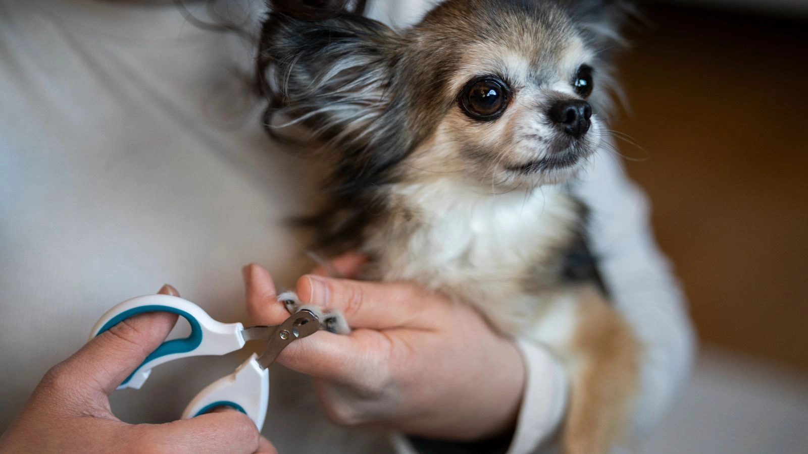 指甲太长会容易伤到家人以及家具容易出现划痕,严重还会导致指甲嵌入脚垫导致不适。首先,使用磨甲器磨掉指甲的前端,再使用专业的宠物指甲剪剪2mm的长度。注意有些宠物的指甲偏深色并不容易判断血线,需通过触碰来判断。以防万一,主人可提前准备止血粉止血粉